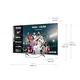 Haier QLED 4K UHD H65S80EUX - Smart TV 65", Google TV, Dolby Audio, HDR 10, Smart Remote Control, Google Assistant, Bluetooth 5.1, DBX TV, HDMI 2.1 x 4, Sin Marcos, 2024 [Clase de eficiencia energética F]